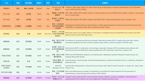 在胸腺上皮肿瘤、头颈鳞癌、肉瘤、前列腺癌、甲状腺癌等其他多个疾病领域,卡瑞利珠单抗、阿帕替尼、瑞维鲁胺、阿得贝利单抗、法米替尼、HRS-7058、HRS-4642等抗肿瘤创新药相关研究一共入选了4项口头报告、1项简短口头报告、4项壁报、1项电子壁报,彰显了z6尊龙官方网站医药强大的研发实力。此外,海曲泊帕和昂丹司琼口溶膜分别在防治化疗导致的血小板减少和恶心呕吐方面各有1项研究入选壁报。